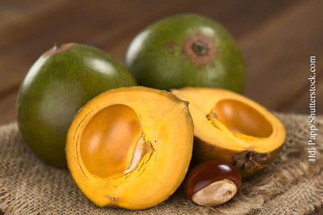 Lucuma, auch „Gold der Inkas“ genannt, ist ein subtropischer Baum, der in den Tälern der Anden heimisch ist. Seine goldgelben Früchte haben einen hohen Zuckeranteil und sind in Südamerika beliebt. Da sie das Immunsystem stärken sollen, für eine schöne Haut sorgen und aufgrund der Ballaststoffe die Verdauung in Schwung bringen, werden sie auch als Nahrungsergänzungsmittel in Pulverform angeboten. Wissenschaftliche Nachweise für die angepriesene Wirkung fehlen jedoch.